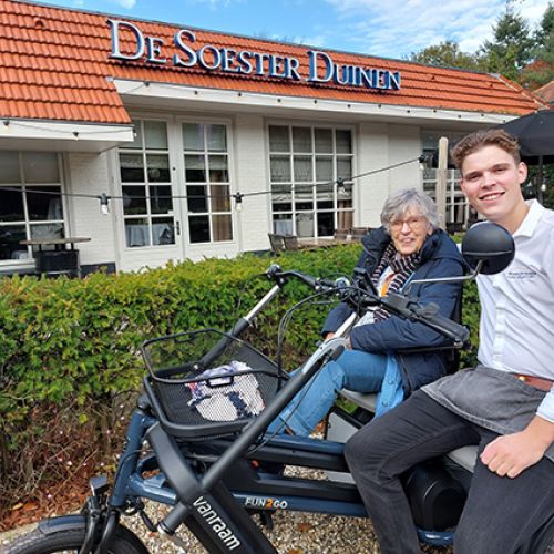 - Medewerkers inzetten als fietsmaatjes: Faciliteer uw personeel om een aantal keren per jaar samen met gasten te gaan duofietsen. Dit draagt bij aan teambuilding, sociaal contact en vitaliteit binnen uw bedrijf, terwijl u ook een waardevolle maatschappelijke impact maakt.